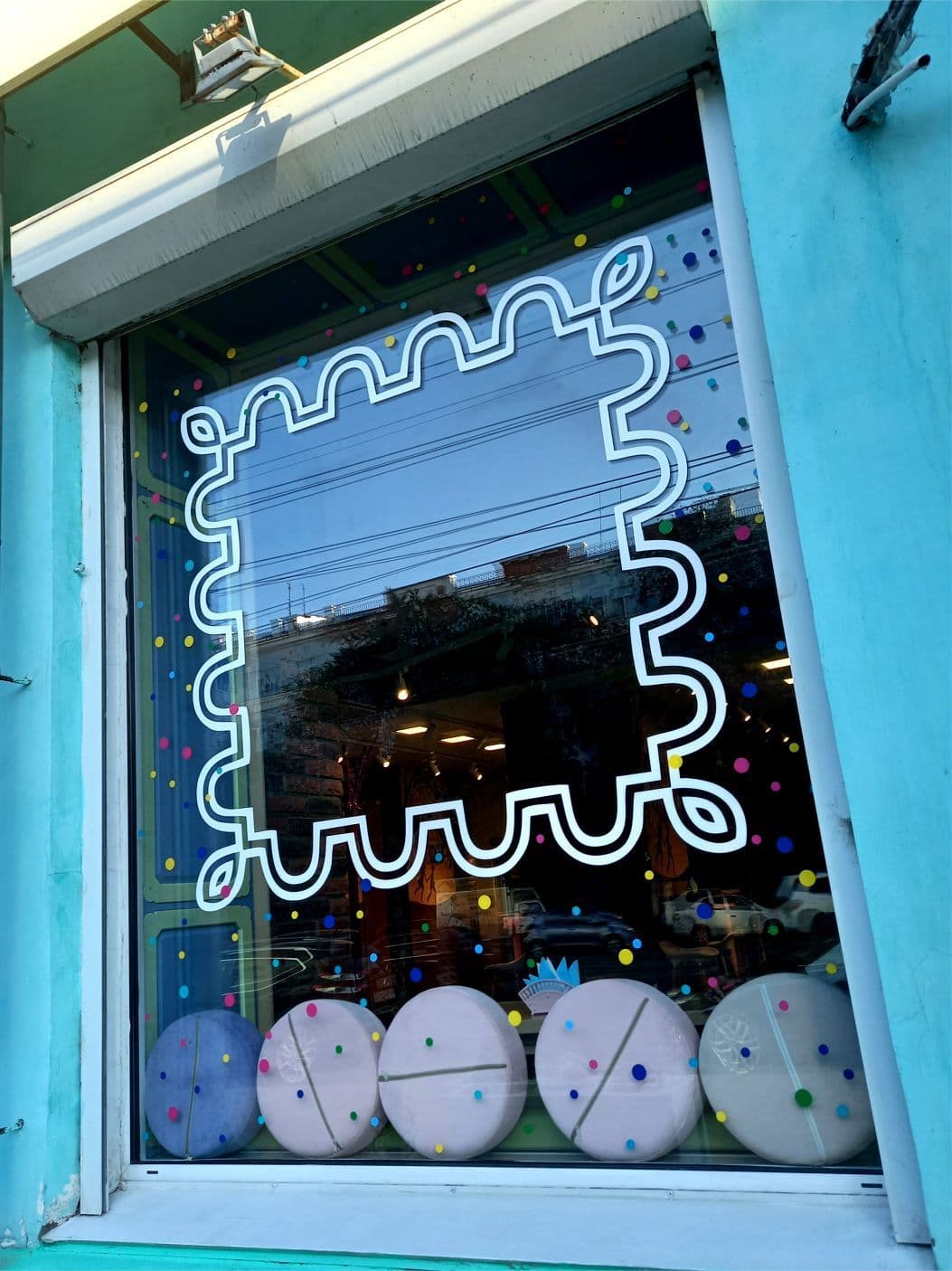 Наклейка виниловой пленкой на окне Пряничного домика.