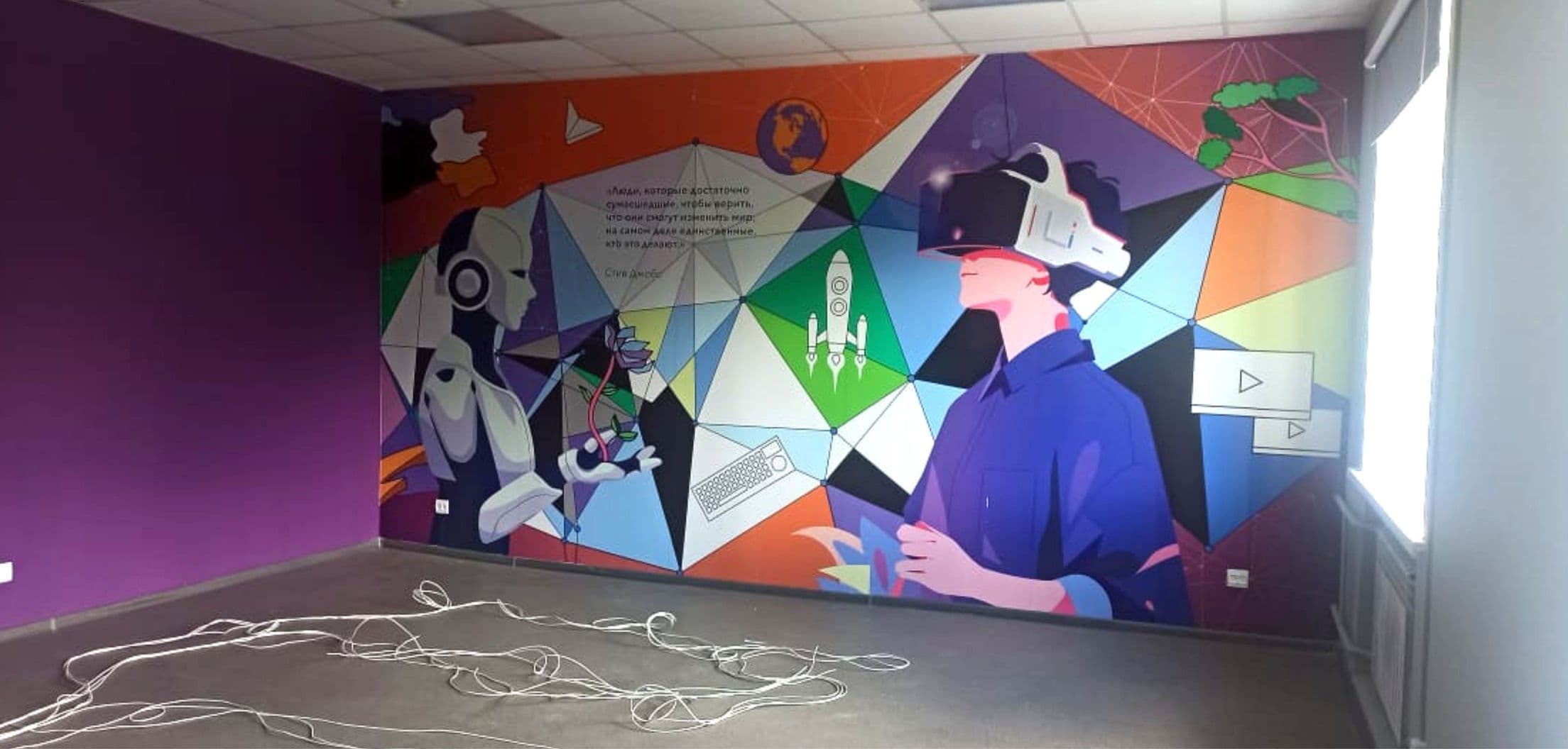 Брендирование стен класса информатики школы от Московского международного колледжа цифровых технологий компьютерной академии ТОП